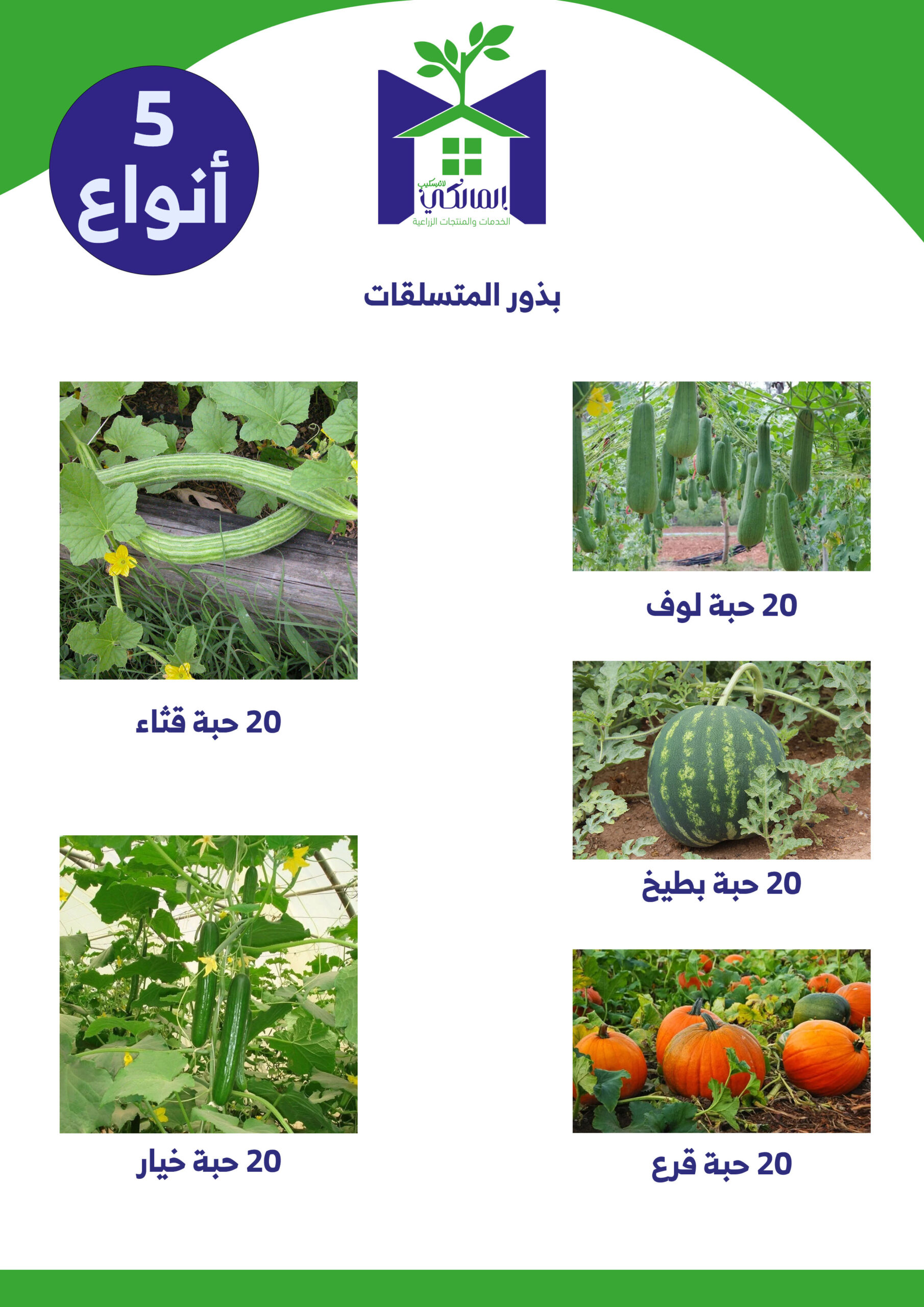 تأتي المجموعة بـ 100 حبة (20 حبة من كل صنف)، مختارة بعناية لتناسب الزراعة الرأسية: