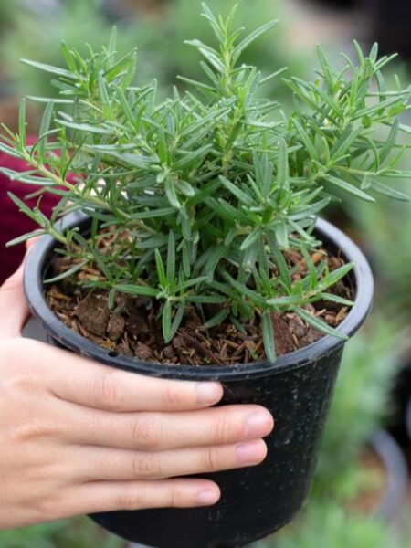 بات ذيل الثعلب الطبيعي مزروع في اصيص بلاستيك اسود ارتفاع النبات حوالى 15 سم ، دائم الخضرة معمر