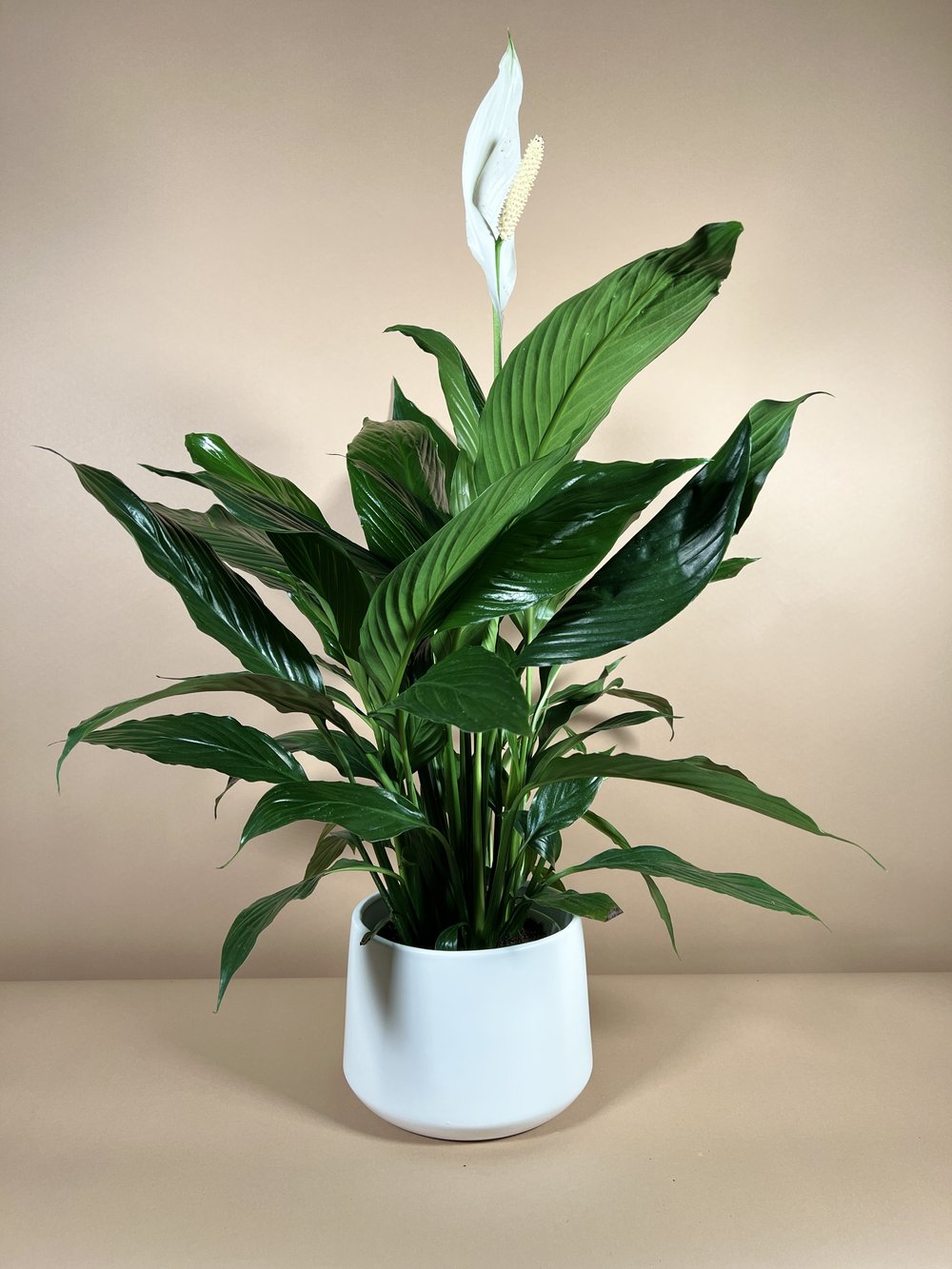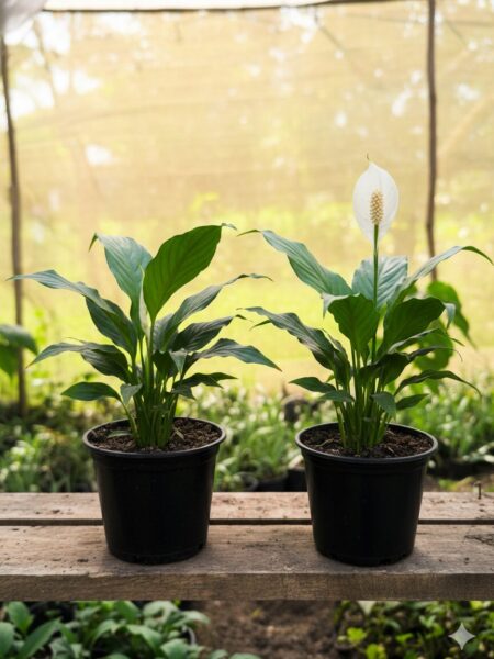 احصل على مجموعتك المكونة من نبتتين رائعتين من زنبق السلام (Peace Lily)، المعروفة بأوراقها الخضراء الداكنة اللامعة وأزهارها البيضاء الأنيقة التي تشبه الأشرعة. تعتبر هذه النبتة خياراً مثالياً لأي مساحة داخلية، فهي لا تضفي جمالاً هادئاً فحسب، بل تعمل أيضاً كمنقي طبيعي وفعال للهواء.